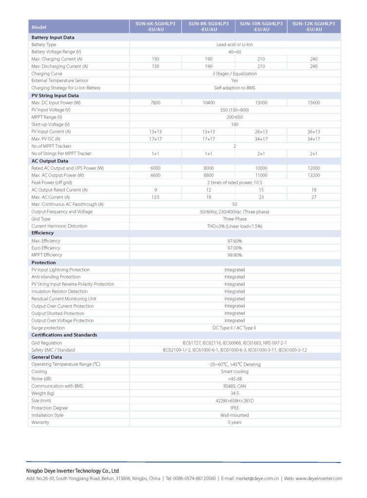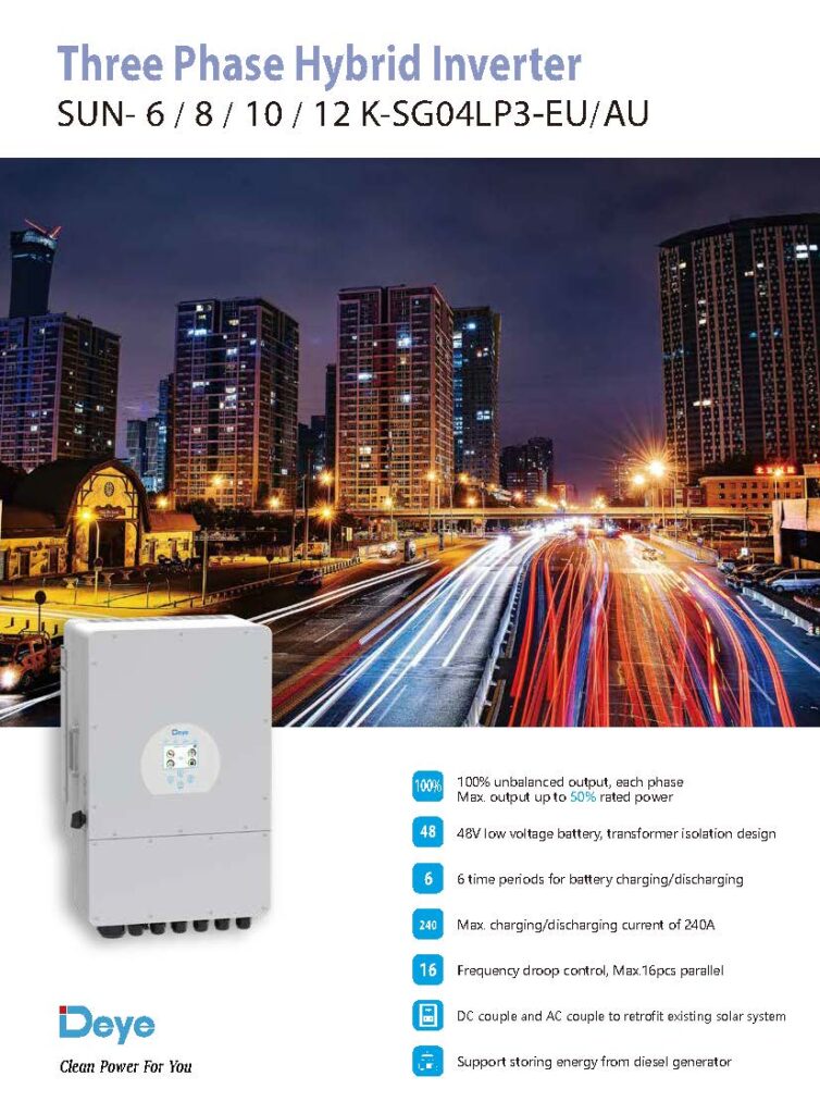 DEYE 10กิโลวัตต์ 1 เฟส Hybrid รุ่น SUN-10K-SG02LP1-AU-A…